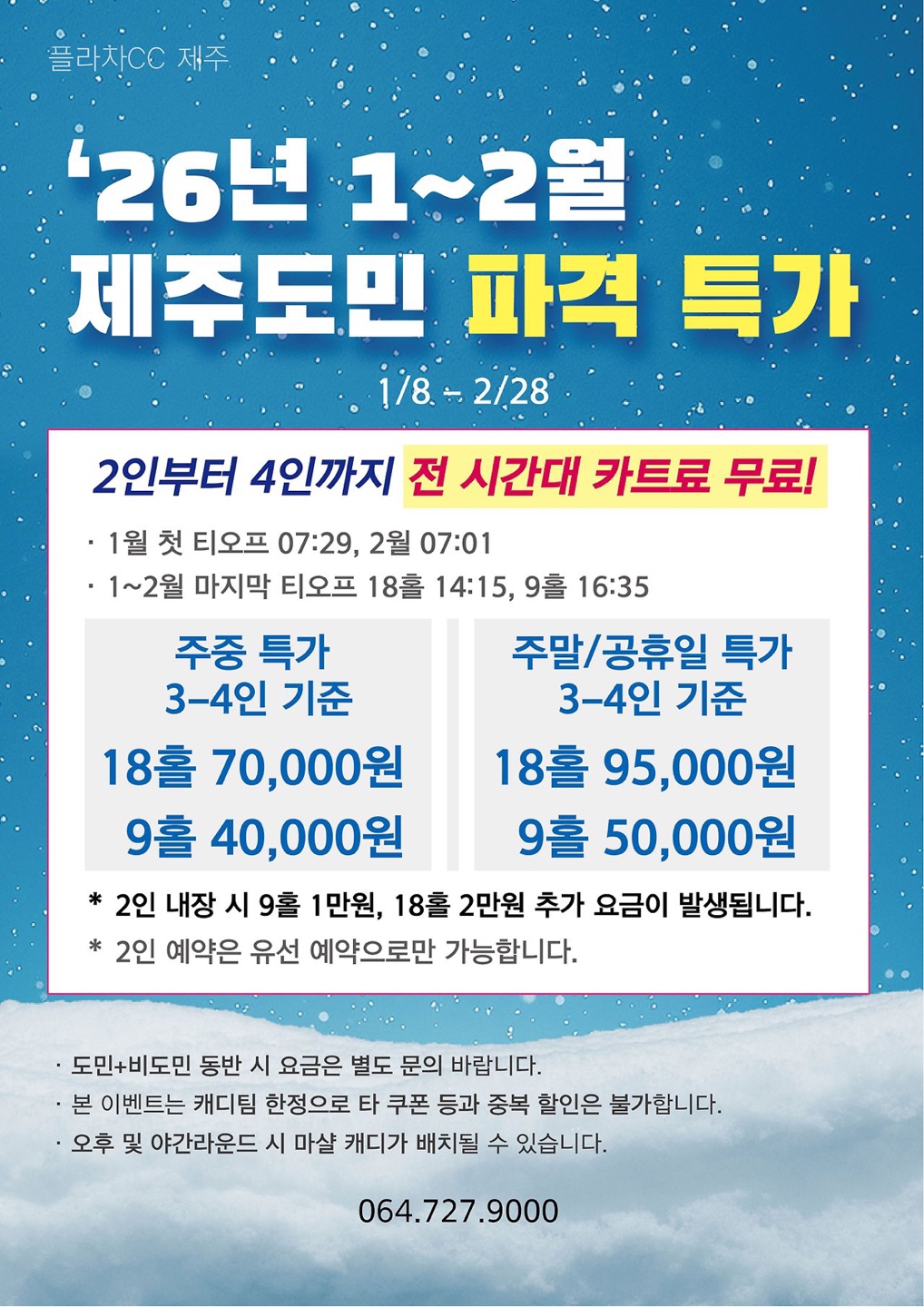 *플라자제주CC 26년 1~2월 제주도민 파격 특가!